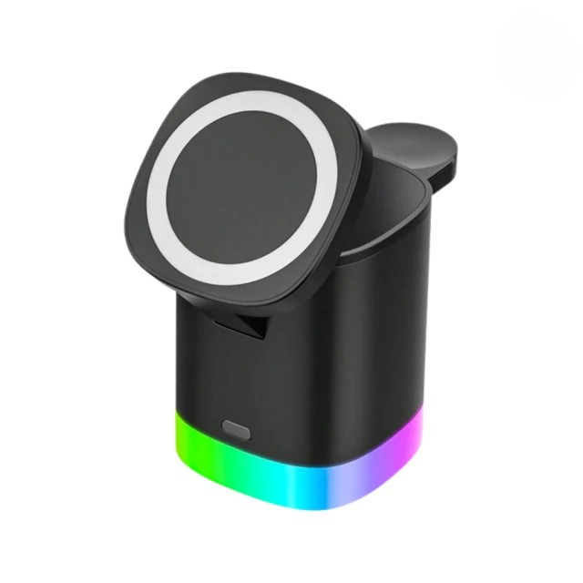 Com tecnologia Qi de indução, basta posicionar seus dispositivos sobre a base para carregar sem fios, eliminando bagunça e garantindo carregamento rápido, seguro e estável. Tudo isso com um design moderno e iluminação RGB personalizável, trazendo estilo ao seu espaço.